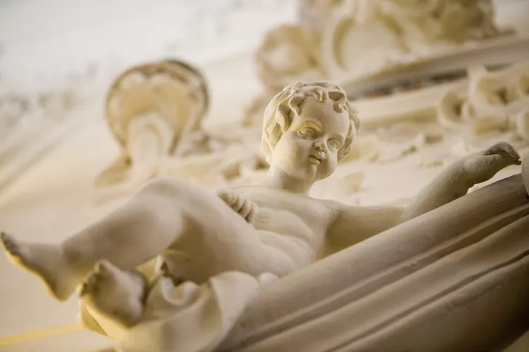 - Use of carved moldings and ornamental details such as stylized natural motifs such as leaves, flowers, cherubs, human, and animal figures